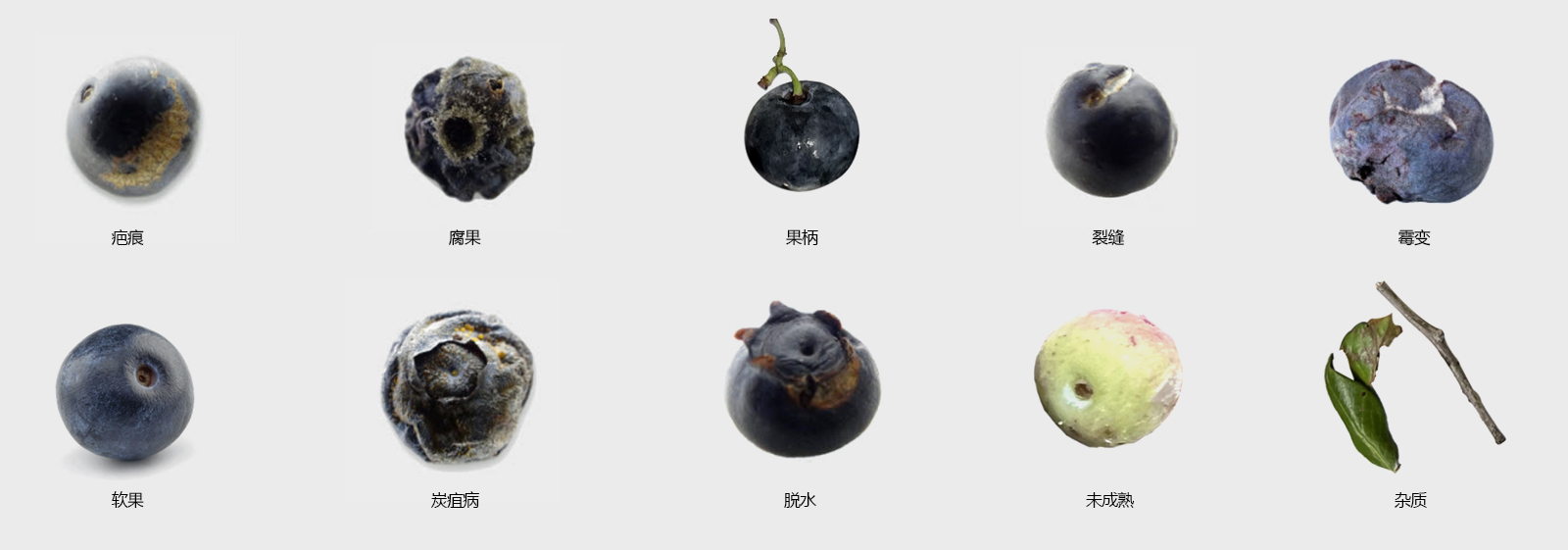 ✩ 缺陷检测:霉变、皱缩、开裂或有疤痕的浆果