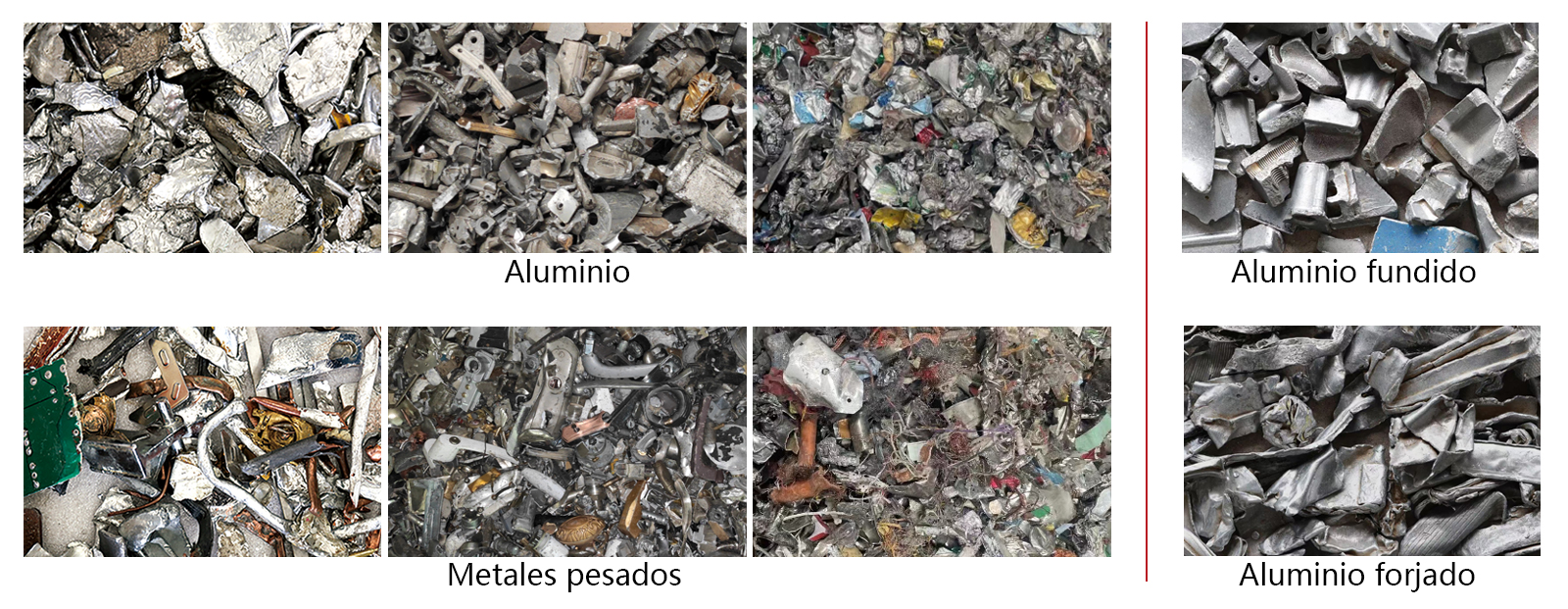 ✦ Identificación y separación precisas del aluminio fundido y el forjado mediante las diferencias en densidad y estructura