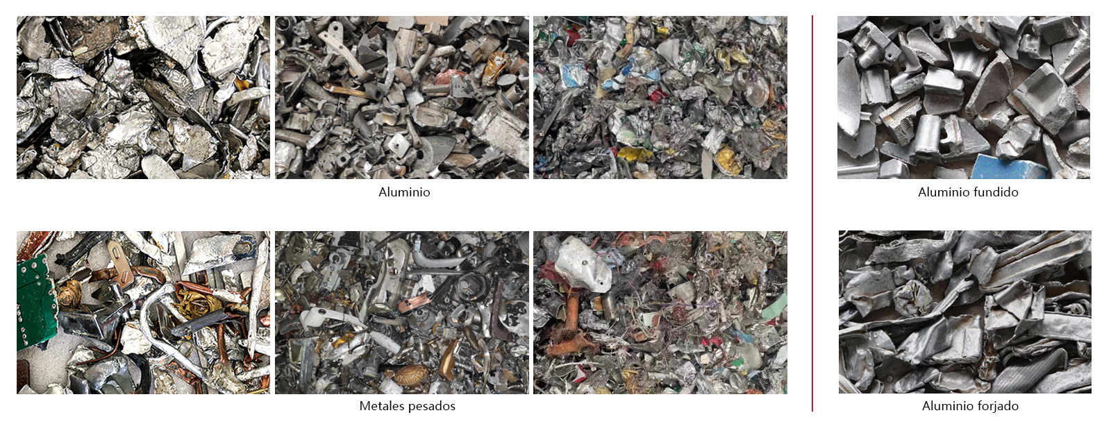 ✦ Identificación y separación precisas del aluminio fundido y el forjado mediante las diferencias en densidad y estructura