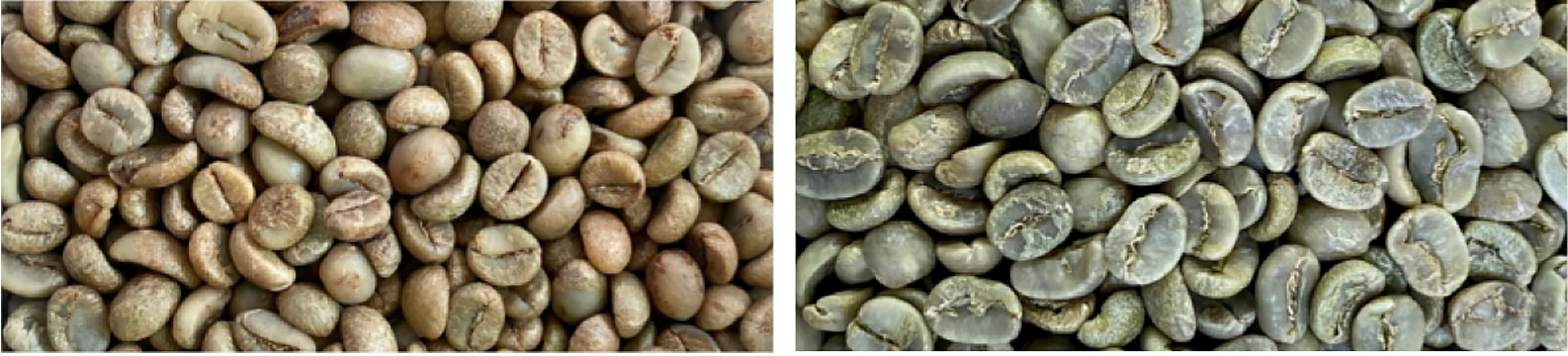 Unevenly roasted beans, roasted quakers, chipped/broken beans
