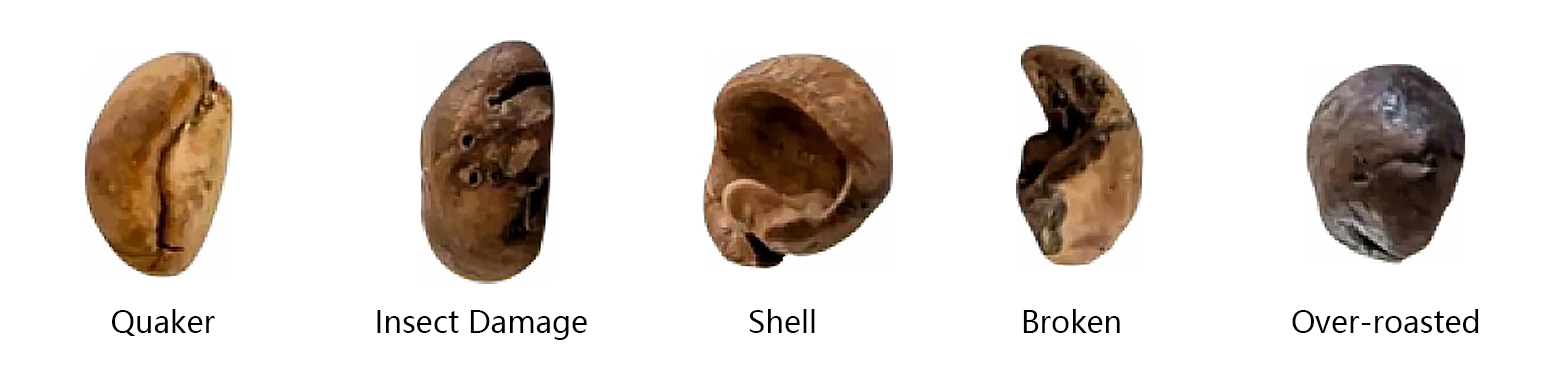 Broken/chipped/cut beans, immature beans (quakers), floater beans and shell beans
