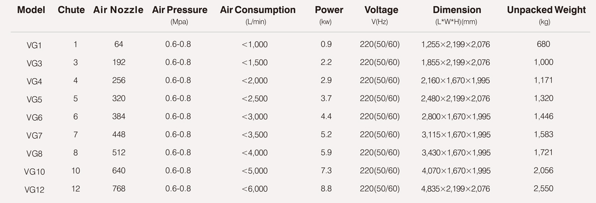 ✦ Modular design of vertical frame size from 1 to 12 chutes (1/4/6/8/10/12) provides processors more flexibility
